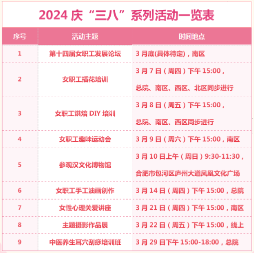除此之外,心理关爱讲座、女职工发展论坛征文演讲等活动还将陆续推出。