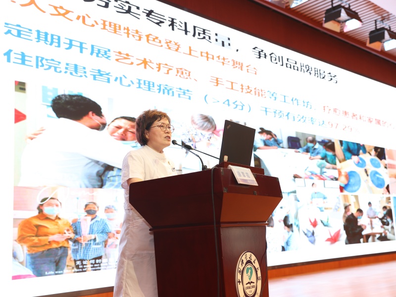 肿瘤内科徐军霞代表优秀学科发言,分享了优质服务、质量安全、教学科研和团队建设等方面的学科管理经验并提出了下一步的学科发展方向。