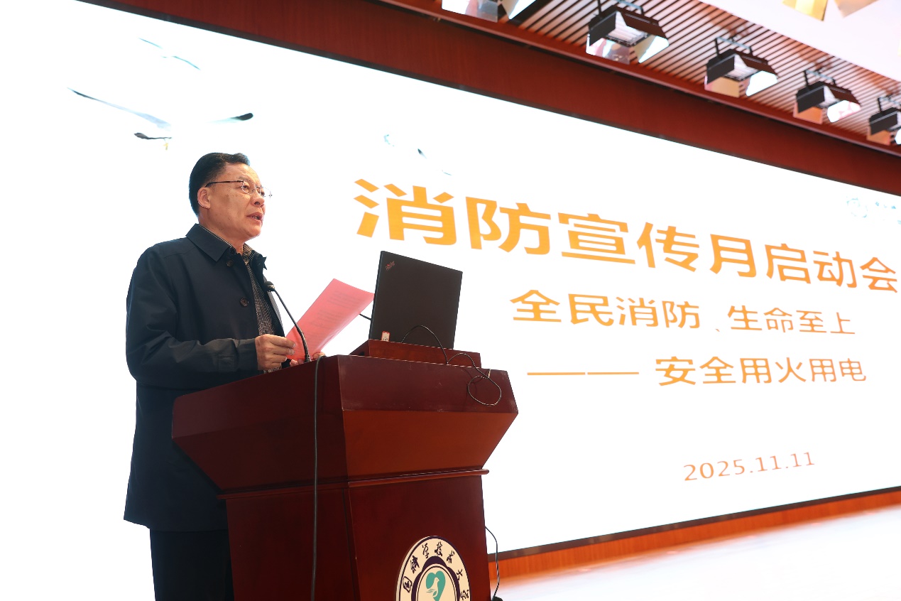 今年11月9日是第34个全国消防日,主题是“全民消防、生命至上——安全用火用电”。11月11日下午,我院组织召开2025年消防宣传月活动启动会,对安全生产和消防安全工作进行部署。医院领导班子成员和全院管理干部参加会议。会议邀请合肥市消防救援支队一级指挥员桑泽尧授课,中国科大党委常委、副校长,院党委书记刘连新出席会议并讲话。会议由副院长石礼忠主持。
