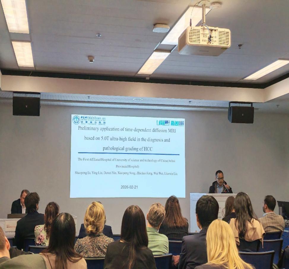 李少朋医师在大会上作题为“Preliminary application of time-dependent diffusion MRI based on 5.0T ultra-high field in the diagnosis and pathological grading of HCC”的大会发言,详细介绍了基于 5.0T 超高场磁共振的时间依赖性弥散成像技术在肝细胞癌诊断及病理分级中的初步应用成果,展现医院在肝脏疾病影像研究领域的最新进展,为肝癌精准诊断提供了全新研究思路与技术参考。
