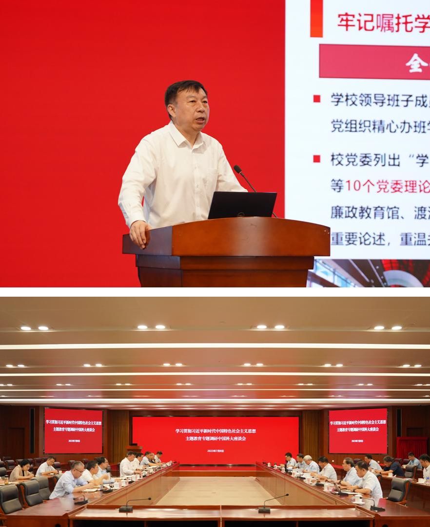 侯建国一行还与学校领导班子成员座谈,舒歌群就学校主题教育开展情况进行汇报。