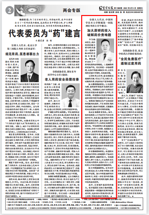 加大原研药的研发。以抗菌药为例,耐药菌导致很多抗菌药治疗效果差。目前临床上治疗效果较好的抗菌药基本都是国外生产的,价格昂贵。希望国家对抗菌药等临床迫切需要的药物原创研发加大投入。如果我们能独立生产出克服耐药问题的抗菌药,不仅老百姓用药负担减轻,临床疗效提高,还能避免将来出现感染无药可用的窘境。