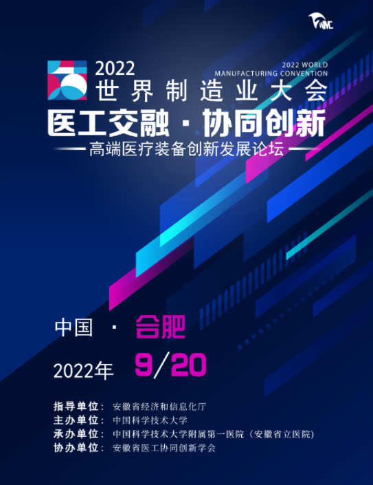 9月20日,2022世界制造业大会·高端医疗装备创新发展论坛将在安徽省合肥市举办。论坛由安徽省经济和信息化厅指导,中国科学技术大学主办,中国科学技术大学附属第一医院(安徽省立医院)承办,安徽省医工协同创新学会协办。