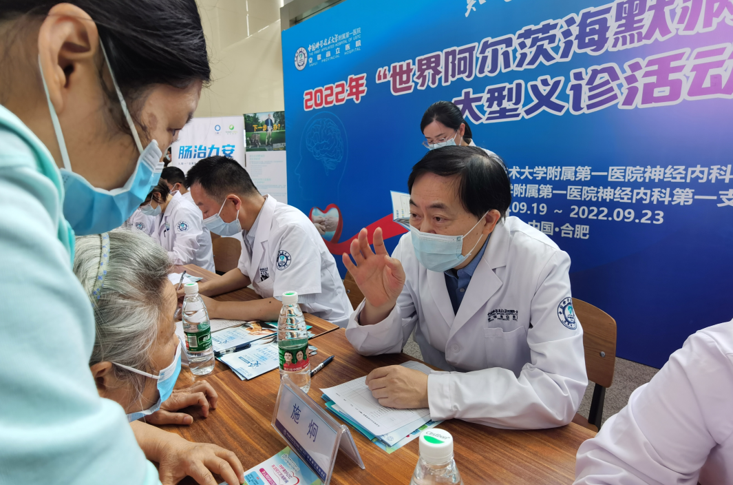 “你现在在哪一层楼上?您现在按照我说的去做,用右手拿着这张纸,用两只手对折起来,放在大腿上……”21日上午,中国科大附一院组织了“世界阿尔兹海默病日”义诊活动,记者在活动现场看到,神经内科多位专家在为市民答疑解惑,咨询者大多为老年人,也不乏一些相对“年轻”的中年人。