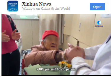 At a provincial hospital in Hefei, central China's Anhui Province, a 101-year-old COVID patient kissed the doctor's hand to express her gratitude before being discharged.
