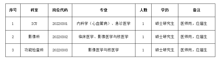 (五)专业:专业对口,医学类岗位要求本科专业为5年制/4年制临床医学或与硕士研究生专业一致,非医学类岗位要求本科专业与硕士研究生专业或岗位相关。