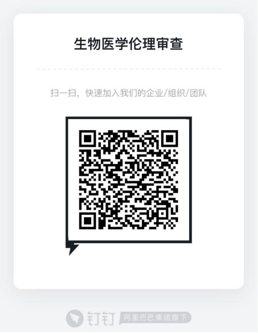 请用钉钉扫码加入“生物医学伦理审查”,经管理员同意后,您将加入“生物医学伦理审查”组织。