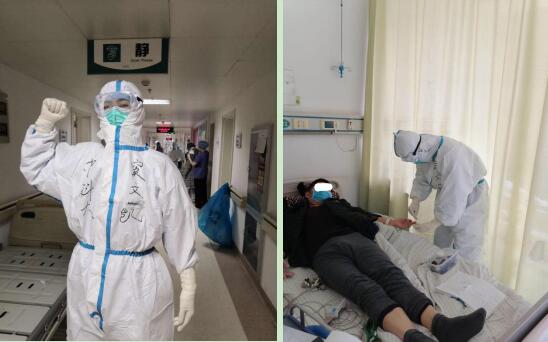 经过简短又系统的培训后,窦文凯与同行的队员们入仓工作了。工作的第一天,他回忆说:“穿着层层防护服,几个小时不吃不喝不上厕所都没什么,最怕的是防护镜上的水蒸气,整个世界一片模糊,戴着三层手套给患者打留置针,说实在的,心都悬着呢!还有啊,有的老大爷一口当地方言,我真恨自己怎么不生在武汉啊!”虽然有困难,窦文凯总是一副坚强、乐观、阳光的样子,他对患者说“相信很快就能迎来春天,祖国和人民都会团结一致救助你们的,有我们呢!”
