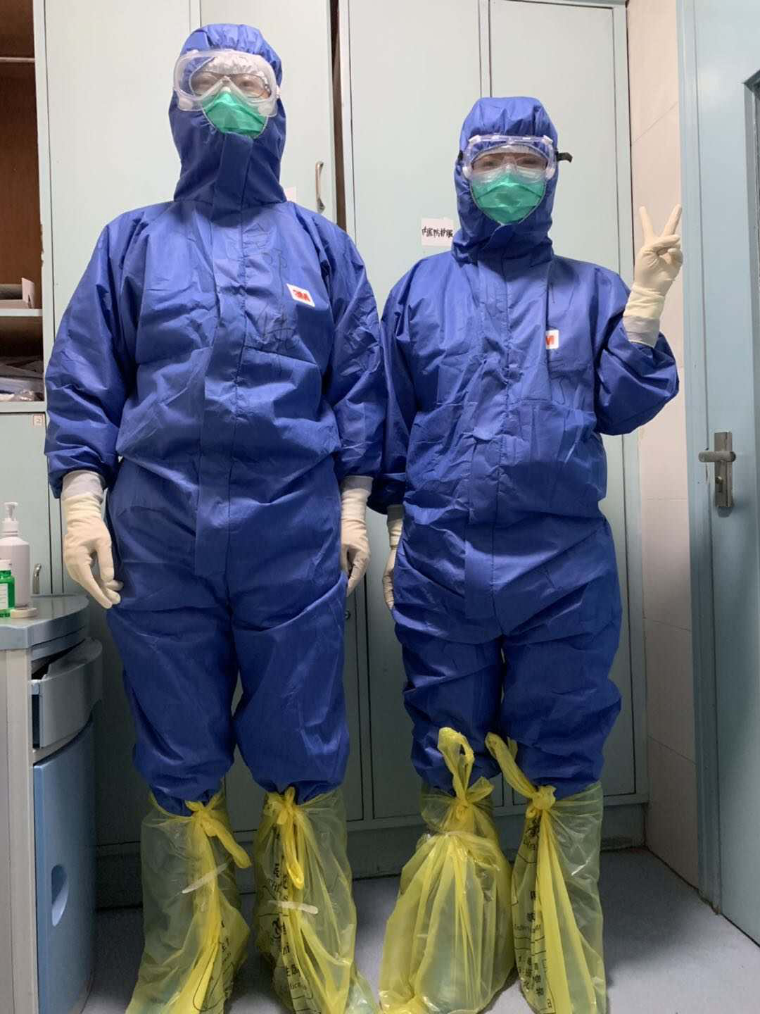 “每次进入隔离病房要做防护,帽子、第一层口罩、隔离衣、第一层手套、第一层鞋套、防护服、第二层手套、第二层鞋套、护目镜、面屏,一整套流程需要半个小时。” 因为要对疑似患者进行咽拭子采集,检查之前无法确定谁是真正的患者,为避免患者间交叉感染,只能不停地往身上叠套一次性防护服。与收治确诊患者的病区相比,这个过程更加辛苦,更需耐心细致,不能松懈,既是保护医护工作者本身,也是为了保护潜在的未感染者。
