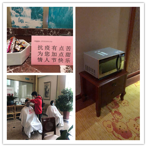 感染病院的医护人员工作之余,须要进行单独隔离,下班后的时间刘文婷都是一个人在附近酒店的单人间里度过的。酒店供应三餐,定点领取。问她是否感到孤单,她说“工作一天返回房间会感觉疲劳,但我一点都不孤单。主任送来莲花清瘟胶囊,护士长给我配制干扰素滴鼻液,其他同事日常微信陪我聊天解闷,还时常叮嘱我不要忘记吃药(刘文婷本人是一名甲减患者)。”她还说,病毒无情人有情,不能外出,剪头发有困难,酒店附近某爱心理发店的理发师,自愿上门免费为我们理发;情人节那一天,酒店特地在前台准备了巧克力。“每一个人都让我很感动,觉得社会非常美好,很温暖。”