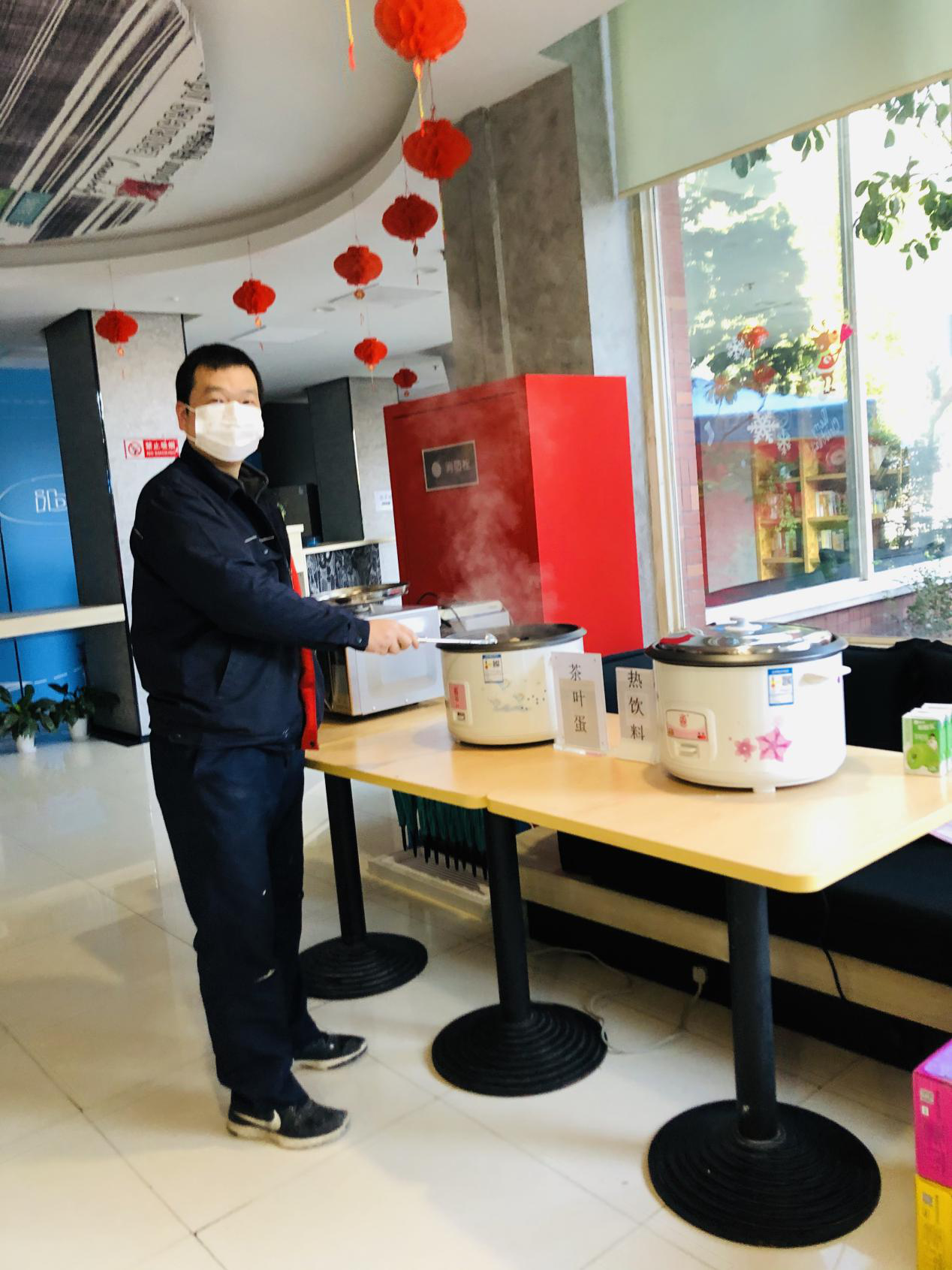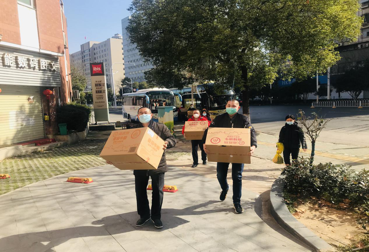 我们到达武汉后,居住在汉江区的宜必思酒店。到这里的第一天,我们就见到了以胡经理为代表的几位志愿者,他们一直负责我们的生活安排,想办法照顾好我们。为了能让我们一日三餐能有热饭到口,他们准备了微波炉和电饭锅;因为上班的班次不同,他们还很贴心地为我们准备了热饮和自制的茶叶蛋,给我们充饥。