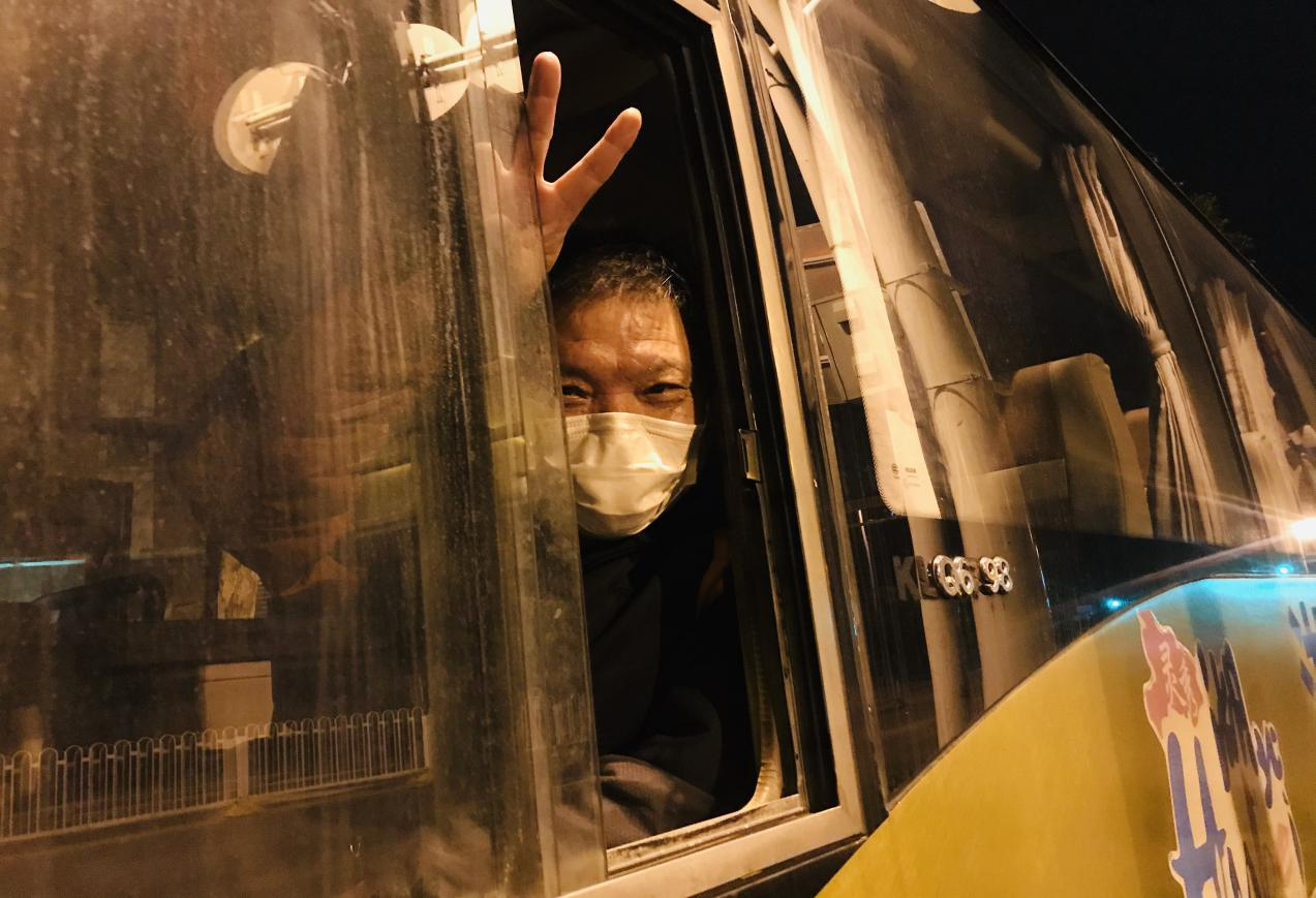 为了保障上班的安全与便捷,志愿者胡经理还找来了三位公交车师傅,他们根据我们上班的模式,轮流值班,负责接送我们出行,每天酒店门口都可以看到有公交车停在那里,可以随时发车,即便深夜2点下班,马路上总会有一辆车为我们亮着灯。
