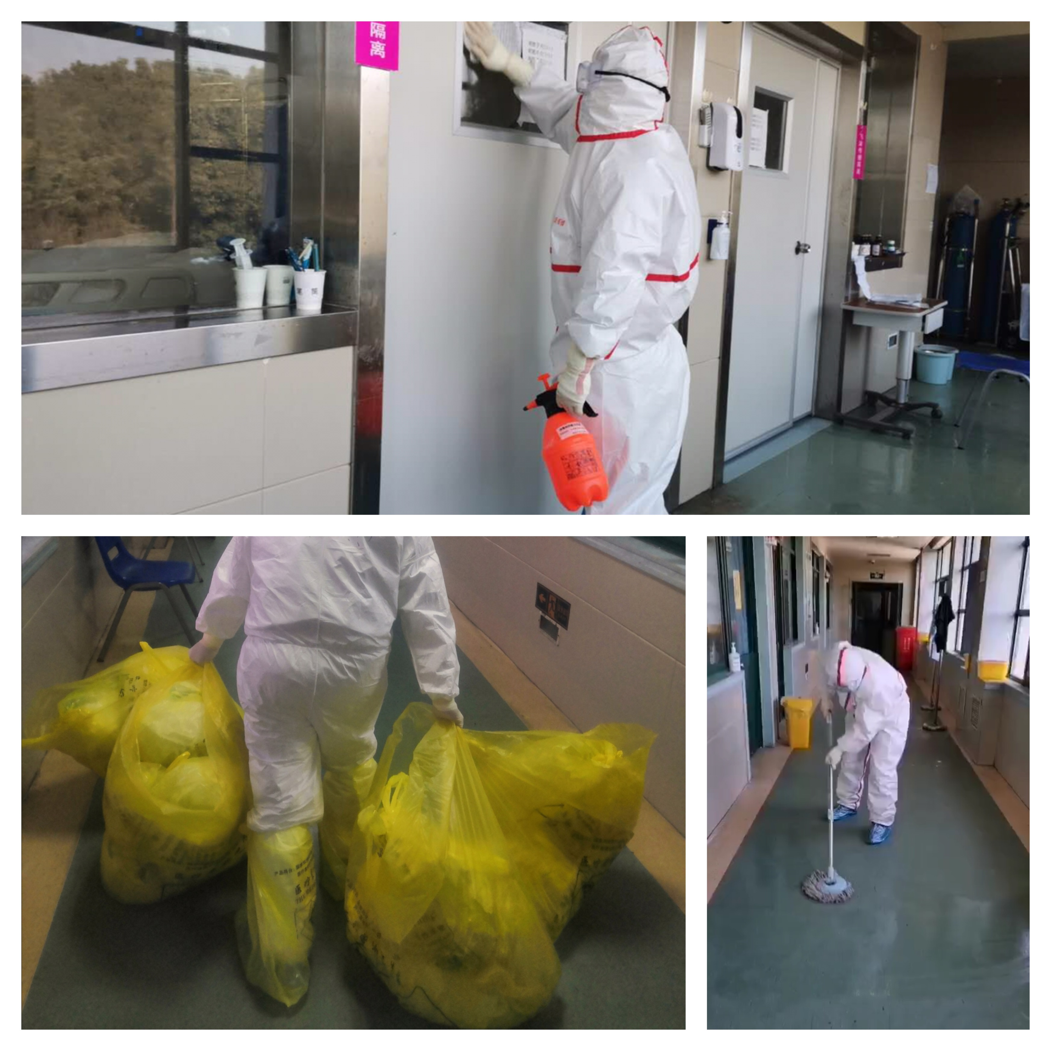 因新冠肺炎传染性极强,为避免交叉感染,医院格外强调重症病区消毒卫生工作,护理支援同志们及感染病院的同志们一起,除承担重症病人的救治护理工作外还主动承担病区的消毒清洁工作,对待工作她们从不叫苦叫累,始终用乐观的态度和勤恳的劳动对待每个人和每一天。