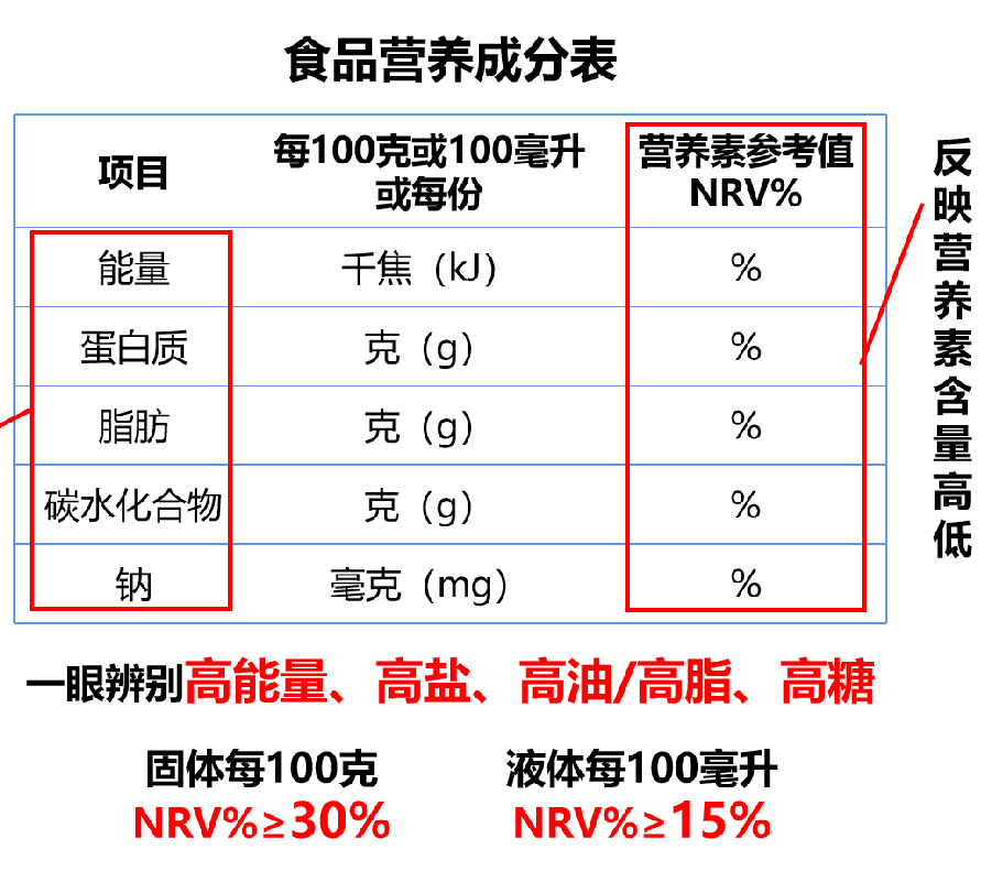 学会看NRV%,就能选择真正想要的高营养食品,轻松鉴别“高能量、高盐、高油/高脂、高糖”,为健康避雷。