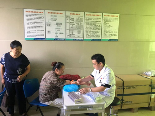 检验科的工作人员,用精准细致的工作,向医院离退休老同志表达自己的敬意。实际上,这已是检验科同仁连续第三周全体放弃周末休息。通过牺牲三个周末的休息时间,检验科圆满完成了全院在职与退休职工的体检工作。(检验科 石玉如 文/图)