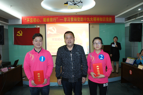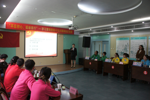 为认真学习宣传中国共产党第十九次全国代表大会报告精神,激发广大党员、职工学习贯彻十九大、新党章的积极性,增强党员队伍生机活力。11月29日下午,由院党委主办,组织人事科、各党支部、院办公室、信息科、宣传科等承办的“不忘初心,砥砺前行”学习贯彻党的十九大精神知识竞赛在我院门诊部三楼会议室隆重举办。院党委委员、副院长郑家华,党委委员、工会主席童颖,副院长陶庆民出席活动并担任评委,全体党员与广大职工参加了竞赛活动。