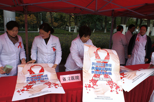 为进一步宣传、普及艾滋病防治知识。 12月1日上午,我院选派两名艾滋病防治专家,参加由安徽省卫计委、合肥市卫计委、瑶海区卫计局联合主办的“世界艾滋病日”主题宣传活动。