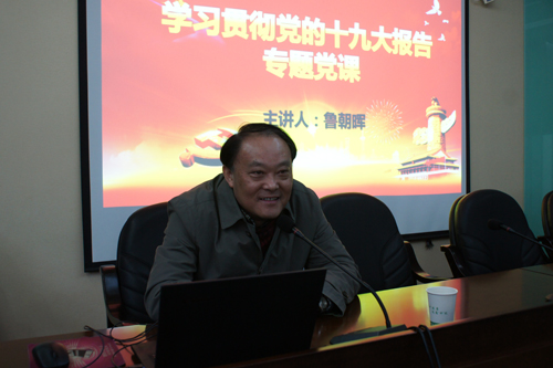鲁朝晖书记深刻阐述了党的十九大的主题和主要成果,详细讲解了习近平新时代中国特色社会主义思想,要求广大党员高举中国特色社会主义伟大旗帜,坚定不移走中国特色社会主义道路,不忘初心、牢记使命,为中国人民谋幸福,为中华民族谋复兴。随后,鲁朝晖书记结合习总书记说的实施健康中国战略,分析了当前医药卫生体制改革和分级诊疗的发展形势,与大家分享了省立医院近期的发展成就,并针对感染病院区如何更好地发展给予了充分的意见和建议。