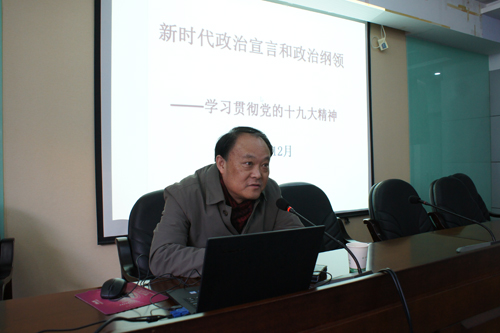 根据省委、省直工委、省卫计委关于宣传贯彻党的十九大精神的通知,总院党委工作部统一部署,院领导班子成员深入开展宣讲工作。12月18日下午,总院党委委员鲁朝晖书记来到我院,召开以“新时代政治宣言和政治纲领——学习贯彻党的十九大精神”为主题的宣讲会,我院张良明院长、童颖主席以及各职能科室负责人出席了会议,全体党员参加了会议,会议由张良明院长主持。