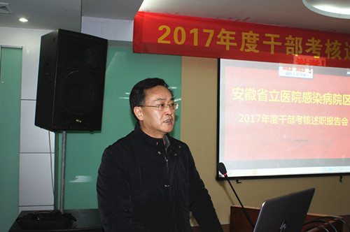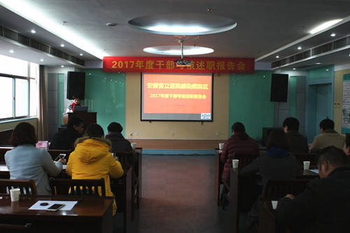为加强对我院管理干部的管理和监督,提高科学管理能力与水平,科学评价管理干部政治业务素质和履行岗位职责情况,1月19日下午,感院区召开2017年度干部考核述职报告会。总院党委委员、人事处主任储晓红,总院医务处副主任兼医务科科长鲍萍受邀出席报告会,感院区领导班子、行政职能科室负责人以及临床医技科主任和护士长参加此次会议,会议由马筱玲副院长主持。