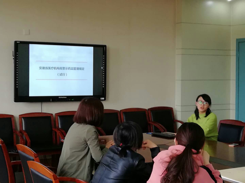 首先,由卢主任为我们深刻解读了2017年省卫计委下发的《安徽省医疗机构临床安全用药监测管理实施细则》与《安徽省临床安全用药监测网管理办法》,呼吁我院所有医务人员积极上报药品不良反应/事件、用药错误和药品质量事件,并介绍了上报流程和我院加入临床安全用药监测网的情况。随后光老师讲解了《安徽省医疗机构高警示药品管理规定》,提醒医务人员加强高警示药品管理。