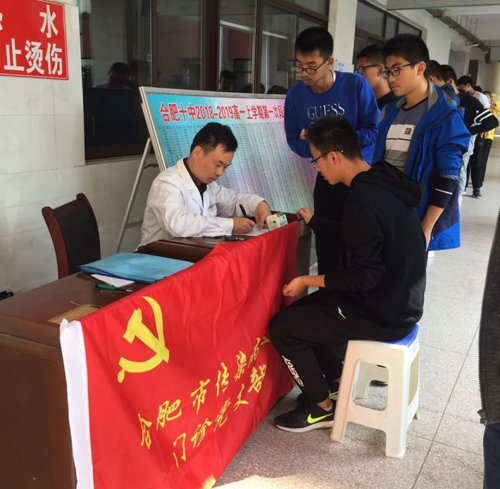 10月23日下午,我门诊党支部安排2名医护人员到合肥市第十中学协助做好PPD结果查验,累计查验学生400多人。