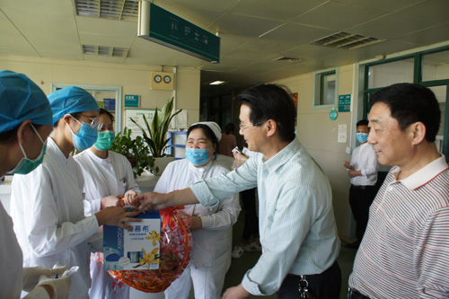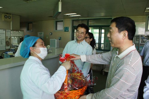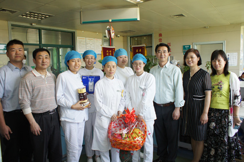 院领导深入到各病区,亲切看望了广大护理工作者,询问了解她们的工作和生活情况,并向忙碌在工作岗位的护士献上祝福的果篮、牛奶、巧克力等礼品,感谢她们用自己的实际行动弘扬着南丁格尔救死扶伤,勇于奉献的人道主义精神。正是因为每个人的爱岗敬业、无私奉献,我院护理事业才能得到稳步长足的发展。 (护理部 路宏/文 宣传科 张劲松/图)