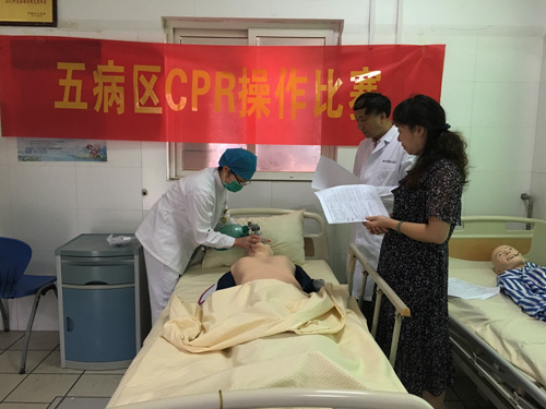 五病区收治疾病多为疑难危重的感染性疾病,病情复杂多变,医护人员经常面临抢救情况,心肺复苏术的熟练掌握对医护人员来说尤为重要,为进一步掌握心肺复苏术的核心理论和技能操作技巧,9月17日,五病区组织医护人员心肺复苏技能竞赛。由徐静、赵俊奖主任担任评委,全体医护人员参加。