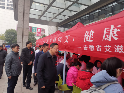 今年12月1日是第32个世界艾滋病日。12月1日上午,由安徽省立医院感染病院(合肥市传染病医院)、安徽省艾滋病诊疗中心举办的大型公益宣传义诊活动在中科大附一院(安徽省立医院)门诊广场举办。我院院长张良明,副院长高勇,来自感染科、介入科、结核科、ICU、妇产科、肛肠科、皮肤科、血液科、骨科、眼科、口腔科、消化内科、神经内科的医务人员,以及来自安徽青卫公共健康服务中心和中国科大生医部医学英才班的志愿者共50余人参加了活动。安徽省卫生健康委副主任杜昌智、疾控处处长王海、主任唐昳、安徽省疾控中心副主任苏斌、中科大附一院(安徽省立医院)副院长虞德才等领导也莅临现场进行指导。