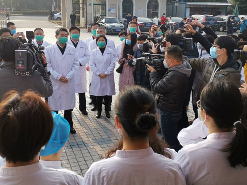 在我院住院部会议室,省委宣传部组织了新闻发布会,我院张良明院长、五病区徐静主任向媒体记者介绍了我院新型冠状病毒感染的肺炎救治情况,并回答了记者的提问。