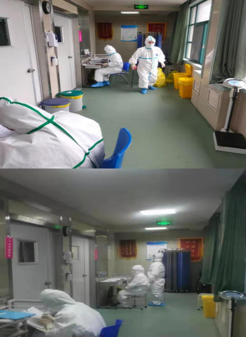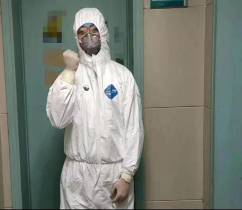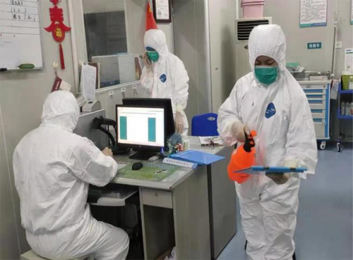 清洁区换好防护服,准备迎接挑战,我们有必胜的信心