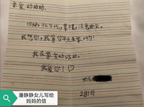 “亲爱的妈妈,你好,忙不忙,累不累,注意安全,我想你。我等你早点回家呦,我在家会听话的,我爱你!”。中科大附一院三病区护师潘静静看着女儿稚嫩的笔迹,泪水早已模糊了双眼,这是她与女儿分开时间最长的一次。在三病区还有许多跟她一样的年轻妈妈,对孩子,有无奈,有亏欠,有愧疚。但转身面对患者时,她们是主心骨,是力量,是阳光。作为护士,她们都宣读过南丁格尔誓言,如今是把誓言践行于这场生死之役。