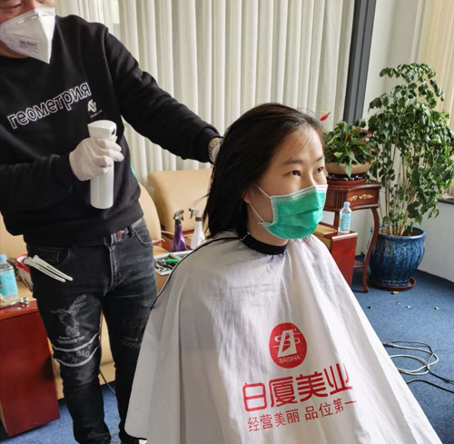 三病区的王静护士第一个走进临时理发屋说:人有爱美之心,为了战胜疫情,我们甘愿变丑。最美的发型不是与明星同款,而是与英雄同款。特意赶来为我们解决头等大事的理发师说:不剪是最美的,剪了是最帅的,向你们致敬。