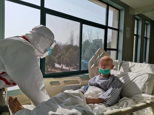 一位92岁的老人是我院收治的年龄最长的“新冠肺炎”患者。记得入院初期,由于环境的陌生,无家属陪伴,身边只有“全副武装”的医护人员等等各种因素,老人一度很抗拒治疗。后来在ICU医护人员的轮流开导及精心护理下,老人很快理解了我们的工作,并且能逐渐配合治疗。看着老人安静的睡去,大家都觉得之前所有的努力没有白费,所有的付出都是值得的!目前老人基本生命体征平稳,期待他能早日出院,与家人团聚。(ICU 马雪然 文/图 李扬/审核)