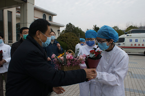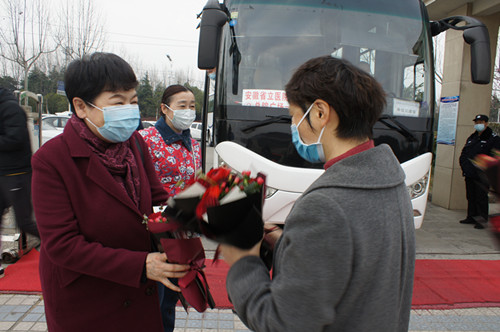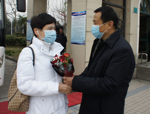 3月6日早上,国际劳动妇女节即将到来的前夕,中国科技大学附属第一医院(安徽省立医院)党委副书记、纪委书记胡礼源、党委委员、工会主席储晓红,党委工作处李矗、护理部储爱琴、工会副主席马琳,安徽省立医院感染病院副院长郑家华、院办主任张宇、组织人事科科长蔡晓曼、护理部主任秦玉荣,早早的来到了医院的门口,为全院的女性职工第一时间送上了节日的祝福。随后领导一行还前往医护人员定点的酒店进行了慰问。