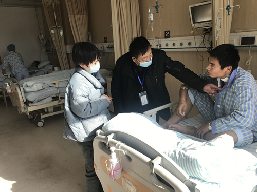 2020年12月30日上午,感染病院后勤支部书记汪洁带领支部委员前往省立医院南区住院部,探望正在住院治疗的结对帮扶贫困户之子。