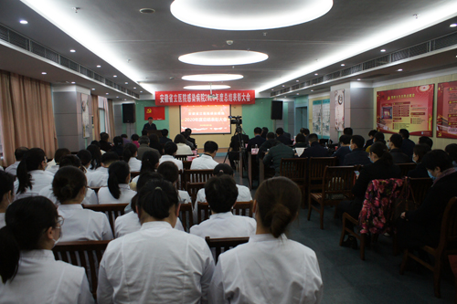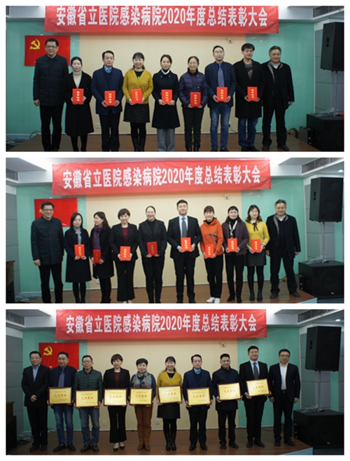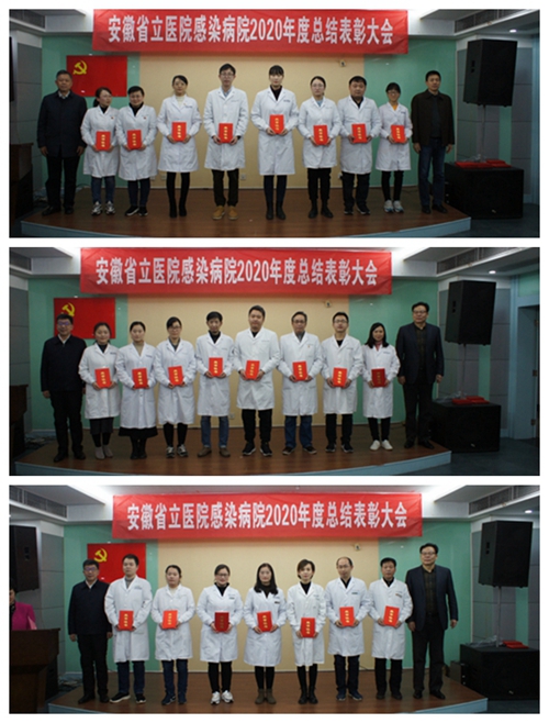 会议第三项内容,为树立典型、激励先进,感染病院副院长郑家华宣读医院的表彰决定,与会领导分别为61名先进个人和8个先进集体颁奖。