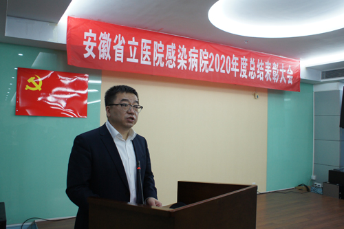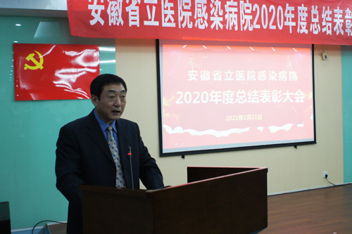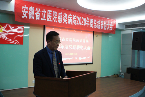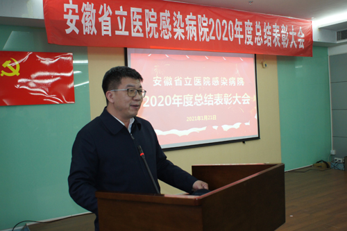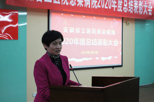 1月21日下午,感染病院区召开2020年度总结表彰大会。集团领导刘连新、严光、黄超群、刘军、石礼忠、虞德才、孙敬武、操礼庆、储晓红、方诗元等出席会议,总院各职能处室负责人、总支书记,南区、西区部分领导,我院领导班子成员、各临床医技科室主任、护士长、职能处室负责人及受表彰人员到场参加会议。会议由感染病院副院长马筱玲主持。