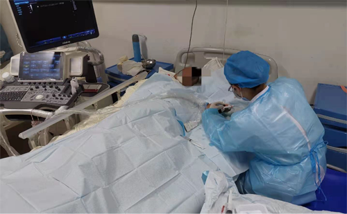 1月30日晚,七病区主管护师刘竹在B超引导下成功为患者江某(化名)实施中等长度导管置入术,手术历时30分钟左右,过程顺利。