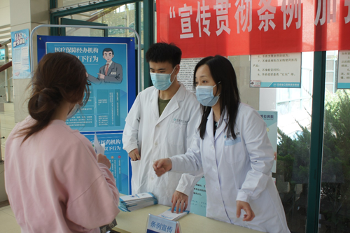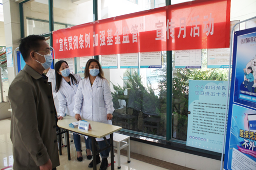 《医疗保障基金使用监督管理条例》将于2021年5月1日正式实施。《条例》的颁布对提高医保基金使用监管工作的科学化、规范化、制度化水平具有重要意义。为强化医保宣传的深度与广度,提高医保政策知晓率,4月29日上午,我院医保办在住院部大厅开展“宣传贯彻条例 加强基金监管”集中宣传活动,活动内容包括《医疗保障基金使用监督管理条例》宣传、基金监督相关问题解答、医保政策咨询等内容。活动现场吸引了众多前来咨询相关问题的患者与家属,医保办工作人员耐心解答了各种医保政策咨询和疑问,并免费发放医疗保障基金使用监督管理条例便民宣传材料。张良明院长亲临现场指导工作,他要求拓宽宣传渠道加强宣传,加深全院医务人员和公众对医疗保障基金监管工作的认识,严格贯彻落实《医疗保障基金使用监督管理条例》。
