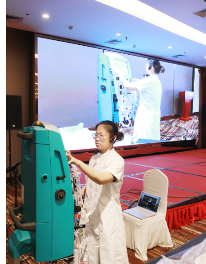 接下来,精彩纷呈的会议拉开帷幕,包括理论篇、操作篇、护理篇和实践篇。我院区一病区胡东燕护士就各种组合式人工肝的安装技巧、护理和管理模式进行分享; 在实践篇ICU孙亚男护士完整进行了导管评估、上、下机实施流程,边操作边解说,熟练、规范和稳重的操作得到参会人员一致认可。会议直至尾声现场仍学习热情不减, 开启了答疑环节,由获得全国血液净化操作大赛二等奖的汪琳老师进行答疑,现场气氛热烈,切实解决了大家在临床实践中存在的问题,并给予合理的建议。