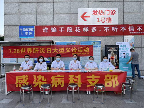今年恰逢中国共产党建党100周年,为进一步落实我党支部“我为群众办实事”主题实践活动及支部立项活动,全体党员同志踊跃报名参加义诊活动,“爱肝日”、“肝炎日”等义诊活动已经成为感染病科支部每年例行的为群众办实事活动,旨在通过义诊活动向广大群众及患者提供权威的科普咨询和诊疗服务,为肝病患者答疑解惑,让更多的患者切实获益。助力“健康安徽”和2030年WHO“消除病毒性肝炎作为公共卫生威胁”的目标。(感染病科党支部 金坤 文/图 李磊/审核)