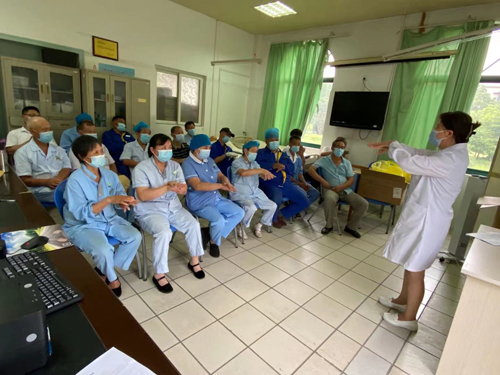 为进一步加强我院物业及保洁人员个人防护、消毒隔离及疫情防控知识及技能,防范院感事件发生,使我院保洁等各项工作更好的有序推进,8月9日下午和8月13日上午,院感科分别在住院部和门诊部举行了院感防控知识全员培训。
