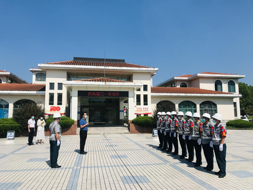 8月31日上午,我院与中保恒杰保安集团开展安保服务进驻对接工作。上午十点,张良明院长亲临现场指导工作,综合保障部袁丽艳主任、朱贇参加进驻仪式。进驻仪式首先由中保恒杰保安集团做训练汇报,十多名保安队员身姿飒爽、步伐矫健、声音洪亮,整齐列队进行进驻宣誓仪式。