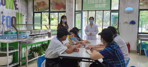 随后,院感办专职人员何霜霜向大家讲解了如何佩戴口罩等防护用品的穿戴,并强调食堂工作人员手卫生的重要性,详细演示了七步洗手法,同时向大家讲解了什么情况下需要洗手或手消毒,对送餐人员的个人防护,环境、餐具等清洁、消毒流程、方法以及新冠肺炎防控要点等知识均做了详细的讲解和具体要求。培训过程中,院感科还将日常督查中发现的问题逐一罗列点评并提出整改措施,重点强调了饮食卫生安全的重要性。
