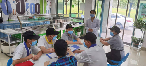 培训会上,感染办主任武金凤首先向全体食堂职工强调了开展此次培训的重要性和必要性;她表示:医院食堂是一个特殊的人群聚集场所,患者、患者家属、医院职工每天都会前来就餐;食堂每日早、中、晚人流量较大,在这一过程中存在人员交叉感染风险。因此,通过开展感染防控知识培训,每个人要掌握院感防控知识、方法和技能并自觉落实到行动中。