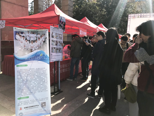 今年是第 34 个“世界艾滋病日”,我国的宣传主题为“生命至上、终结艾滋、健康平等”。安徽省立医院感染病院副院长、安徽省艾滋病诊疗中心副主任高勇和安徽省立医院感染病院艾滋病科科主任曹婉娴两位专家亲临现场为广大学生答疑解惑,医务人员和学生志愿者通过发放艾滋病知识手册、艾滋病暴露后预防手册、安全套和提供免费HIV检测卡等方式,将艾滋病的有关知识宣传给大学生,希望在校大学生能够直面‘性’话题,懂得保护自己。此外,安徽省立医院感染病院的医护人员现场免费给前来咨询的广大师生进行HIV抗体快速检测。此次活动共为180余人提供免费HIV抗体快速检测,共发放各类宣传资料200余份,为500余人免费提供医疗咨询、义诊。