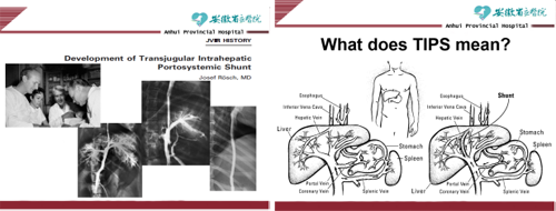 ansjugular Intrahepatic Portosystemic Shunt即经颈静脉肝内门-体静脉支架分流术,简称TIPS。1969年美国学者Josef Rosch首次在狗身上试验获得成功,为TIPS的发展和临床应用奠定了基础,1988年德国学者Richter等首次将TIPS应用于临床,1993年以后TIPS在各国得以推广应用,为广大门脉高压患者解决了消化道出血、顽固性腹水等问题,极大地改善了该类患者生活质量,延迟了生存期。