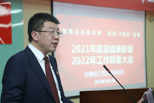 值此辞旧迎新之际,刘书记首先代表总院党政领导班子向为常态化疫情防控付出辛劳和汗水的全体职工表示崇高的敬意和新春的问候,向受表彰的先进集体和个人表示热烈的祝贺!应变局,开新局。感院在做好常态化疫情防控的同时,将医疗质量安全作为医院发展的生命线,强化专科品牌建设,提升综合实力;着力提升服务水平,持续改善患者就医感受;锐意改革创新体制,促进医教研协同发展;加快人才队伍建设,提升行业竞争力;落实同质化管理,增强效能建设,让流程“瘦身”,让服务“加码”,实现了经济效益和社会效益的全面提升。凡是过往,皆为序章。站在新旧交替的分界线上,2022年刘书记希望感院与总院将在省市共建的大背景下加深融合,按照“五个统一”管理目标,力争医院改扩建项目及早开工建设,实现综合救治能力的新突破,感染病院必将开启全面建设的新征程。届时,感院也必将肩负更多的使命,全体职工要从政治意识、大局意识、核心意识和看齐意识出发,精诚团结、密切协作、相互配合,发扬“踔厉奋发、笃行不怠”的精神来战胜过渡期间的种种困难。以“科大新医学”创新实践为使命,集中优势资源加快科研步伐,聚力学科质量管理、人才梯队建设和临床服务能力的提升,逐步实现医教研协同发展,以优异的成绩迎接党的二十大胜利召开!(院办 蒋晓雪/文 言绪传媒/图 张宇/审核)