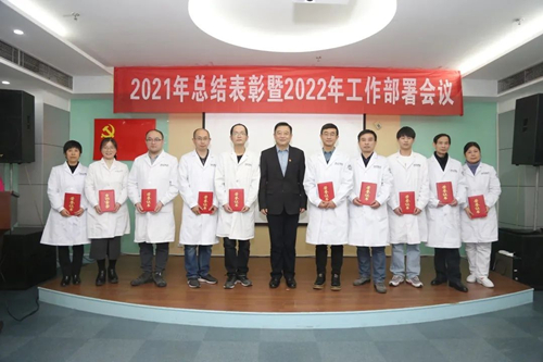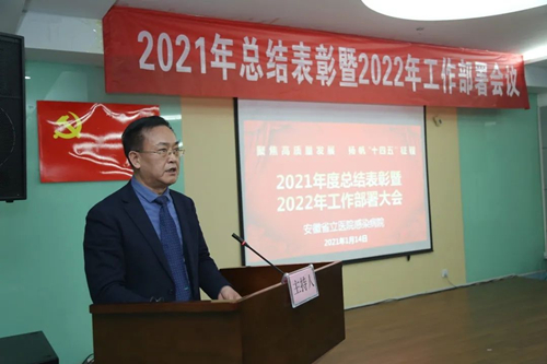 硕果累累辞旧岁,凝心聚力谱新篇。1月14日下午,感染病院区召开2021年度总结表彰暨2022年工作部署大会。集团领导刘连新、严光、虞德才等出席会议,总院各职能处室负责人、总支书记,南区、西区部分领导,我院领导班子成员、各临床医技科室主任、护士长、职能处室负责人及受表彰人员到场参加会议。会议由感染病院副院长马筱玲主持。